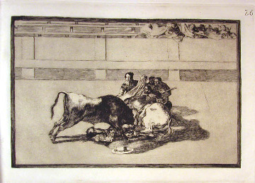 勇敢なレンドーンはマドリード闘牛場で牡牛を長槍で突くが、その技の最中に死んだ