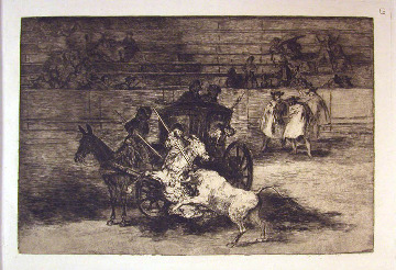 一頭の牡牛につぎつぎと倒される二組のピカドール