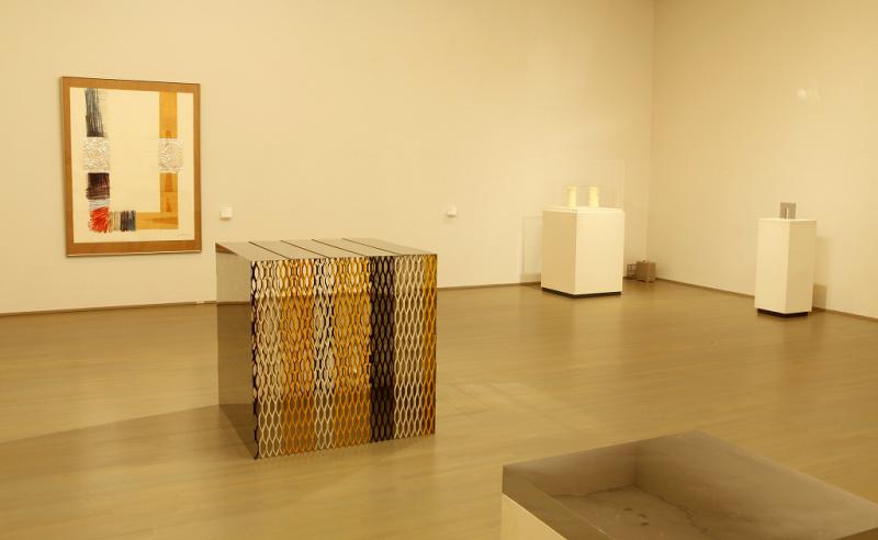 そうした湯原の作品は、当館の正面入口に向かう階段の踊り場に、屋外彫刻《無題 No.8-82》が開館の際に設置され、また1988年には回顧展が開催されています。そうした経緯もあって、2009年度には3点の作品が作家から寄贈されました。この機会に、あらたに寄贈された作品を、これまでに収蔵した彫刻、および〈タブロー・アン・パピエ〉と称する紙の作品25点中の7点とともに展示します。これが、彫刻のあり方を問いかける湯原の仕事をふりかえる機会になればと思うものです。