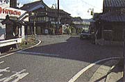 | 町の中央部あたり。道が鍵の手になっている札の辻には、小さな神社、津島神社があります。 | ![]() |